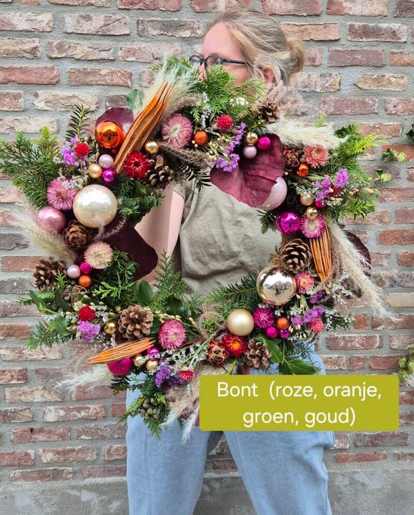 Wij maken voor jou een prachtige kerstkrans in een kleur naar wens. Makkelijk en mooi ☆